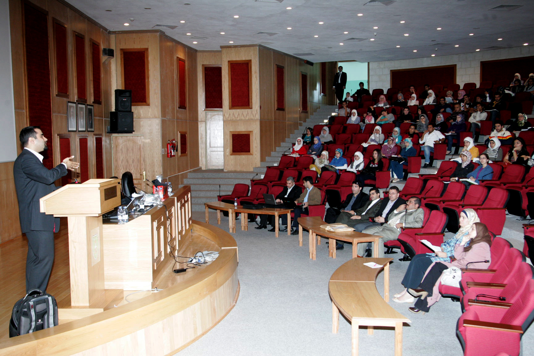 There are 380 seats and it's one of the most important theaters in the University that serves as conferences, seminars and events.